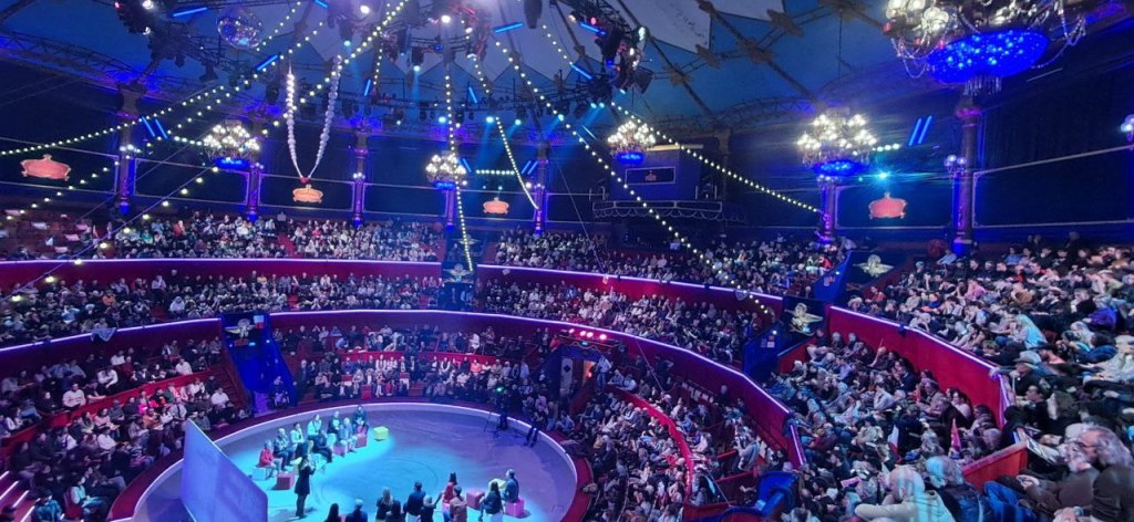 Le Cirque d’hiver pendant le meeting où L’Humanité a estimé que Sophia Chikirou n’avait « pas fait le plein ».