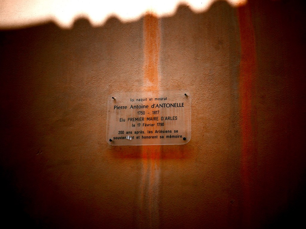 Personne ou presque ne connaît plus Antonelle. Et pour cause. La municipalité arlésienne a bien vissé au mur du patio de l’hôtel aux volets gris une plaque commémorative pour rappeler que Pierre-Antoine naquit et mourut ici. Mais elle comporte deux erreurs : l’une sur sa date de naissance et l’autre sur son nom, rien de moins.